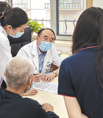 于金明(中)在为患者制订诊疗方案。 |