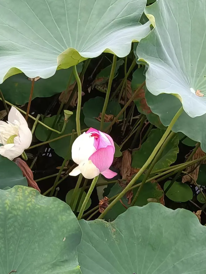 15日下午,尚未完全绽放的双色荷花 图源:上游新闻
