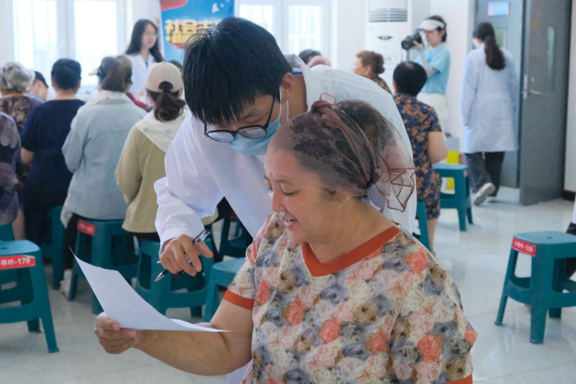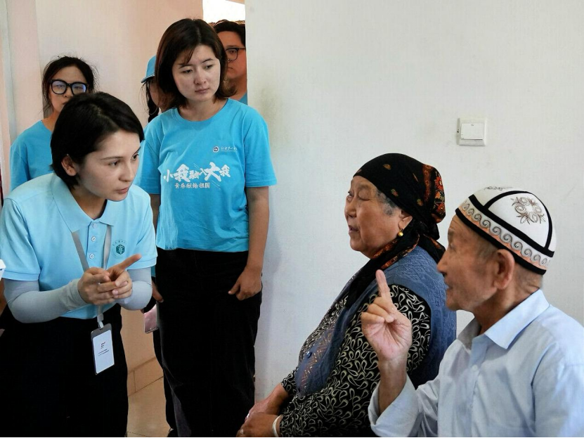 克拉玛依当地黑油山老年社区有400余位老人,大多数系“为采油献青春,为戍边奉全家”的退休石油工人及家属后,博士团成员走进社区,为老人们送去健康服务与关怀。