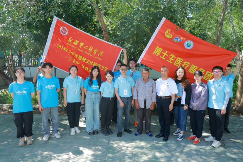 7月,第24届博士团的脚步再次向西出发,飞越3710公里来到新疆克拉玛依,携手新疆第二医学院开展暑期“三下乡”社会实践服务活动。在疆期间,博士团走进3家医院,深入医院各科室参加了早交班和临床查房,对疑难病例进行了探讨并提出了诊治建议,在医疗技术、设备运用、临床科研等方面进行了交流和诊疗;他们送医下乡,积极参与乡村卫生建设和健康教育,向乡亲们普及健康知识,引导大家养成健康习惯。他们还举办了多场讲座和学科建设交流会,助力新疆地区医疗卫生事业和医学教育发展。为期9天的 “三下乡”社会实践活动,成员们总里程超过1000公里,前往3区1乡2村,积极发挥“传帮带”作用,将自己所学的医学知识和科研方法同当地医务人员分享交流,为边疆地区人民群众身心健康贡献力量。