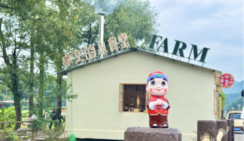 图为王致和卡通形象“王小和”打卡网红小店“卓文的小食堂”