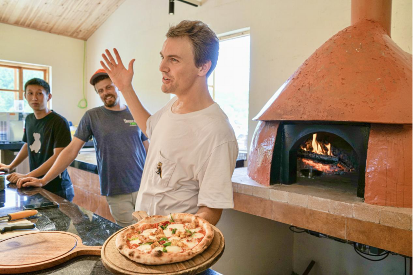 近日,在风景秀丽的黄山脚下,卓文的小食堂,远远就可以闻到一股特别的香味,那是卓文正在烤制新款创意披萨。与传统披萨以芝士、火腿、辣椒等原材料为主不同,卓文尝试把一些本土美食与披萨相结合,制作出不一样的美食。“希望不同的当地食材和披萨结合,能产生不一样的火花,诞生别样的味道,给大家带来独特的体验。”来中国10多年,卓文已经可以说一口流利的中文。
