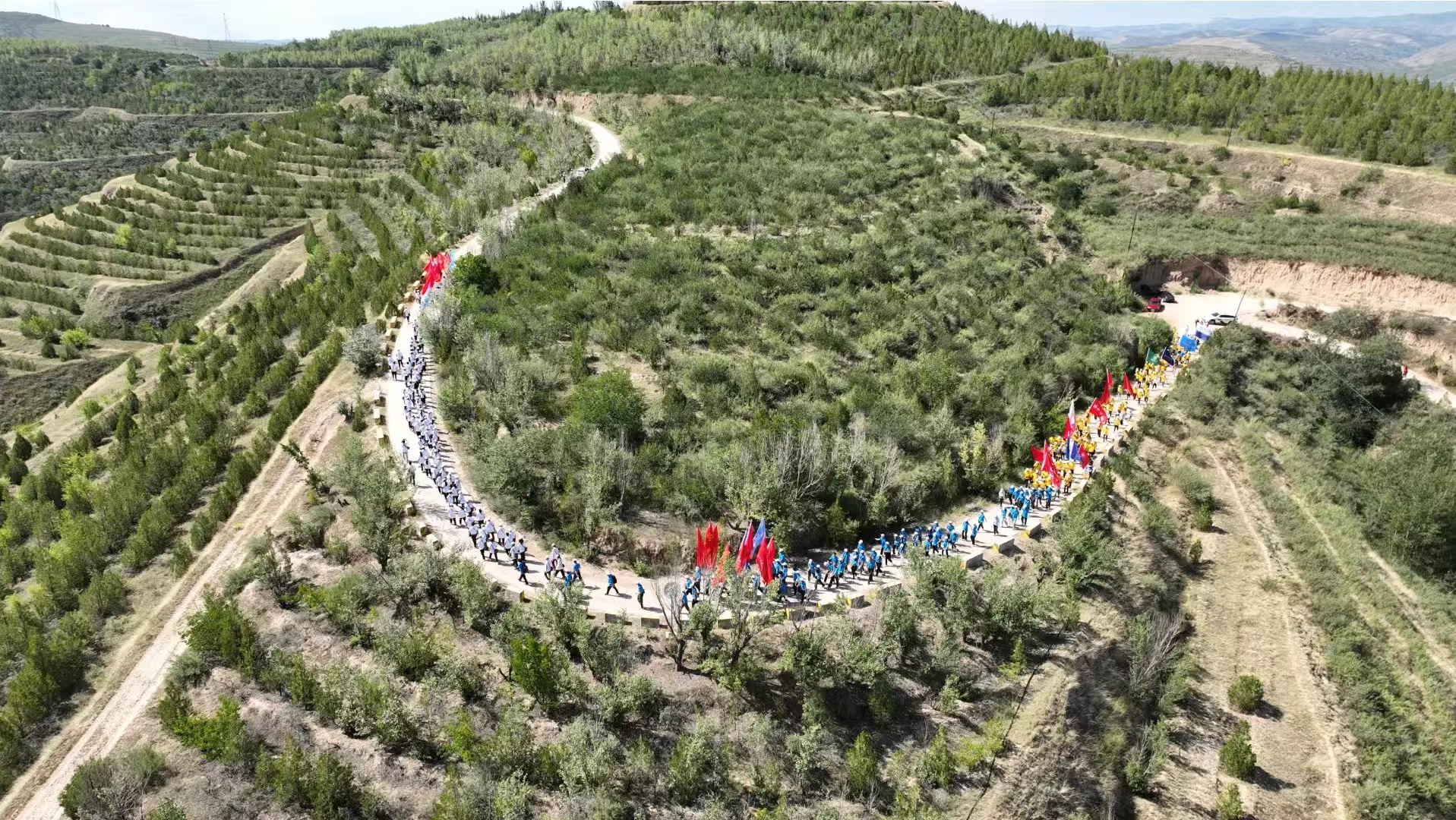 活动全程12公里、山间坡陡路窄,行至半程,已有学生气喘吁吁,但没有一个喊苦叫累。“我和我的祖国,一刻也不能分割;无论我走到哪里,都留下一首赞歌……”“唱支山歌给党听,我把党来比母亲……”行进中,不知哪里率先响起歌声,随后传遍整支队伍,且越唱越有劲、越唱越响亮。