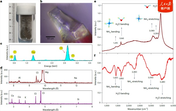 富含水分子和铵的未知矿物晶体——ULM-1的照片和成分组成 图源:中科院网站