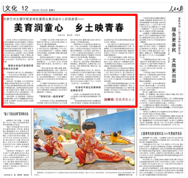 近年来,甘肃兰州文理学院结合自身专业特色和暑期学生活动实践情况,不断推动思政教育创新。学院以“星芽乡村美育计划”为载体,组织教师、大学生志愿者到定点帮扶的庆阳市庆城县开展“互联网+美育”乡村学校美育教育帮扶活动。4年来,先后有150多名师生加入支教团队,他们以美育课程为支点,通过暑期线下支教、日常线上教学等方式,将思政教育融入美育知识传递过程,让乡村孩子、学校师生共上一堂大思政课。