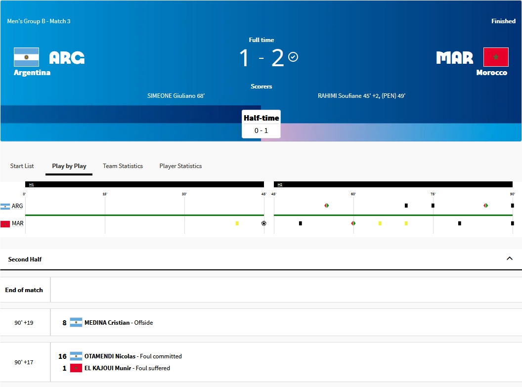 在比赛中断许久后,直至北京时间25日凌晨,官方终于更新了信息:梅迪纳最后阶段的进球因越位被判无效,阿根廷队1:2告负。此外,下半场补时达到了惊人的近20分钟,这在足球比赛中极为罕见。