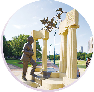 位于美国亚特兰大市中心的百年奥林匹克纪念公园于1996年亚特兰大奥运会举办之际建成,奥运会后成为当地人的运动和休闲场地。图为园内“现代奥林匹克之父”顾拜旦的雕塑,以纪念其为复兴现代奥林匹克运动所作的贡献。 |