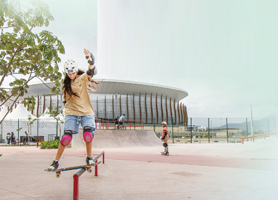 今年5月,巴西里约热内卢的丽塔·李公园正式对公众开放。该公园位于2016年里约奥运会的主赛区巴哈奥林匹克公园的核心区域,总面积13.6万平方米,为市民提供滑板公园、攀岩墙、多功能运动场、儿童玩具区等多项新设施。图为当地年轻人在公园练习滑板。 |