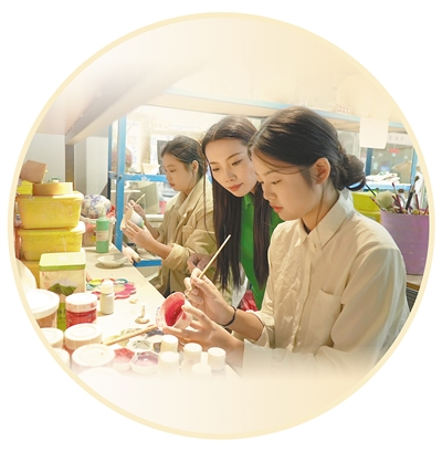 |   江西吉安职业技术学院老师(中)为吉州窑非遗创业班学员授课。 |