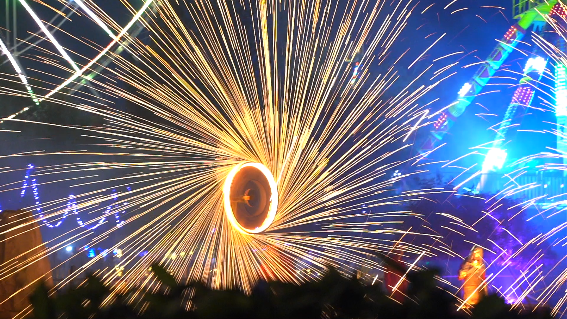 在位于内蒙古包头市昆都仑区的包头乐园里,人头攒动,忽然人群的喧嚣戛然而止,只听“啪”的一声,众人仰望天空,一簇簇流光溢彩的铁花在夜空中绽放后倾泻而下,金花飞散,仿佛绚烂的烟花雨,让人叹为观止。