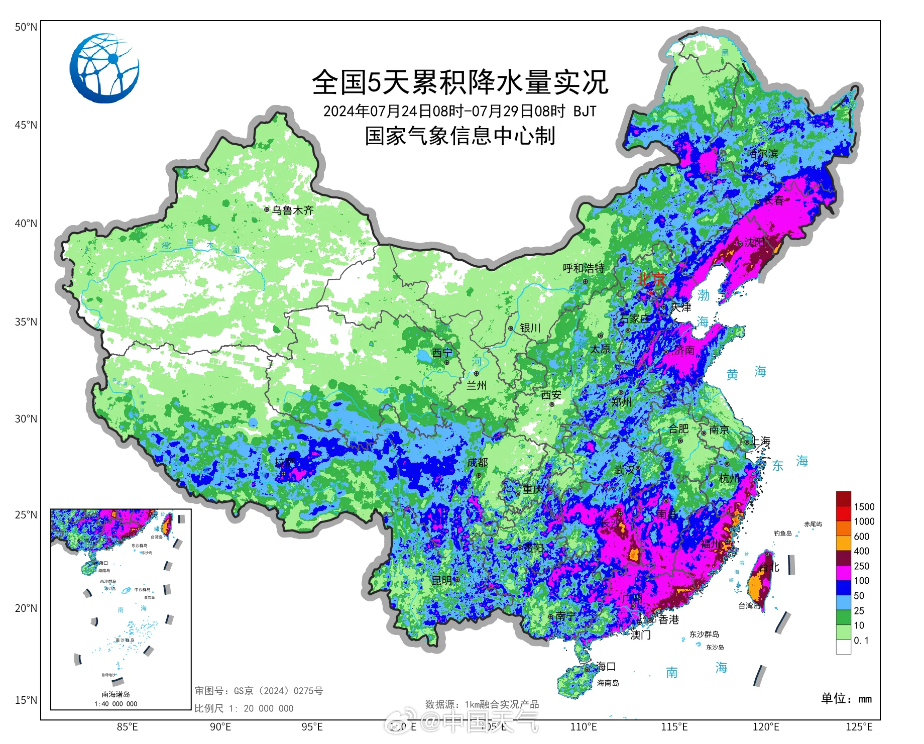 具体过程累计雨量来看,25日08时至29日08时,湖南累计降雨量大于250毫米的有426个站,福建477个站,广东343个站。但截至目前,台风“格美”及其减弱后的低涡制造的最大累积降水量是722.6毫米,发生在湖南省兴宁镇天鹅山;福建最大累积降水量是674毫米,发生在福建省霞浦水门小竹湾村;广东最大累积降水量是693.4毫米,发生在广东省汕头浮标应用。