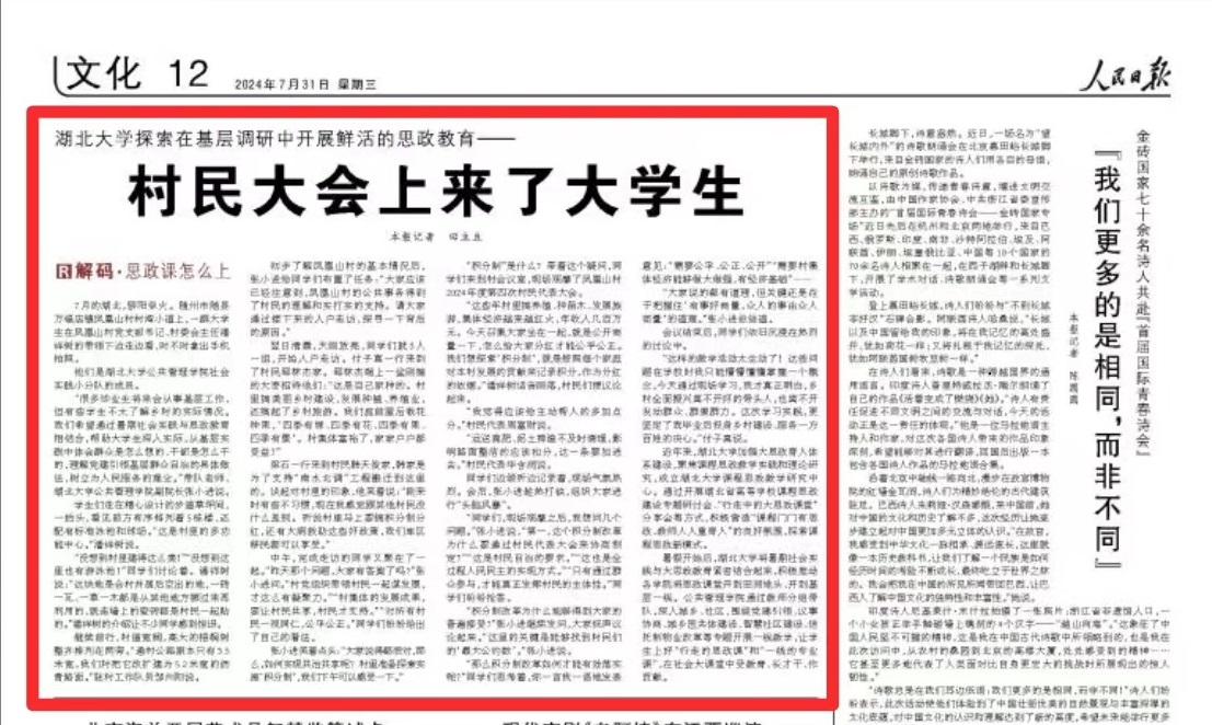 “很多毕业生将来会从事基层工作,但有些学生不太了解乡村的实际情况。我们希望通过暑期社会实践与思政教育相结合,帮助大学生深入实际,从基层实践中体会群众是怎么想的、干部是怎么干的,理解党建引领基层群众自治的具体做法,树立为人民服务的理念。”带队老师、湖北大学公共管理学院副院长张小进说。