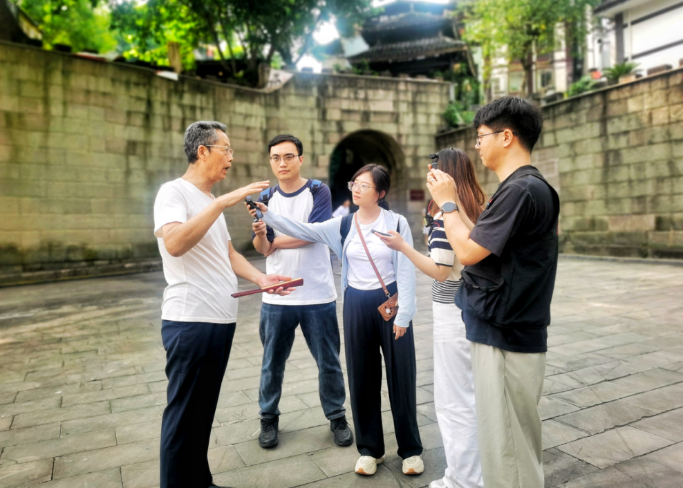 7月30日,报道组在重庆市沙坪坝区磁器口古镇采访当地居民。刘玥摄