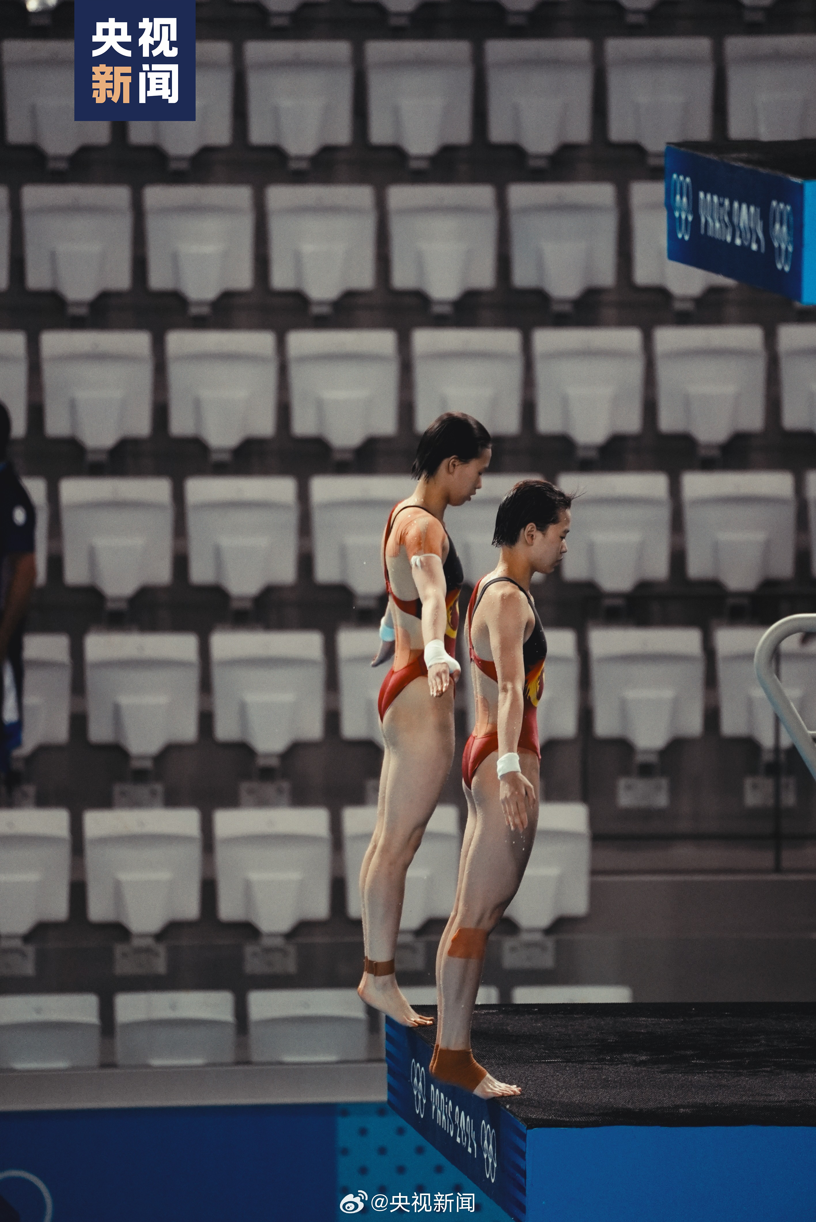 今天下午17点,巴黎奥运会跳水女子双人10米台比赛将举行。赛前热身环节,中国组合全红婵 /陈芋汐的动作整齐划一一起为“梦之队”加油!