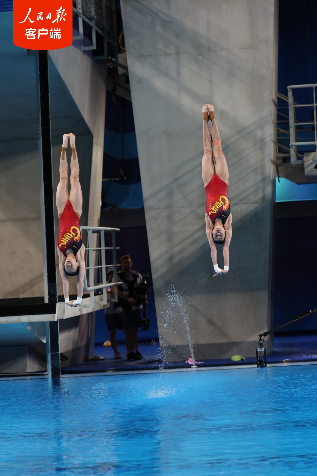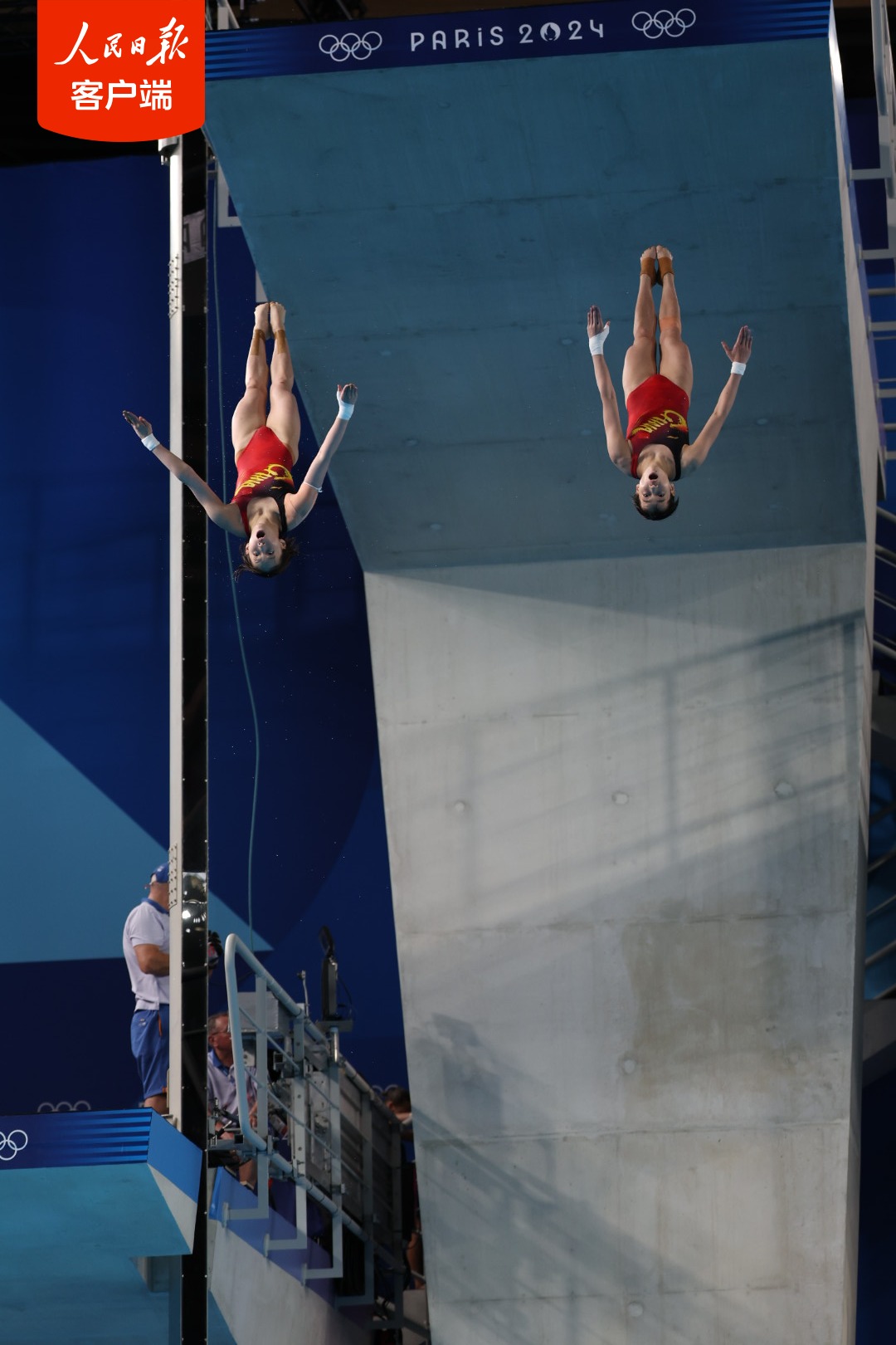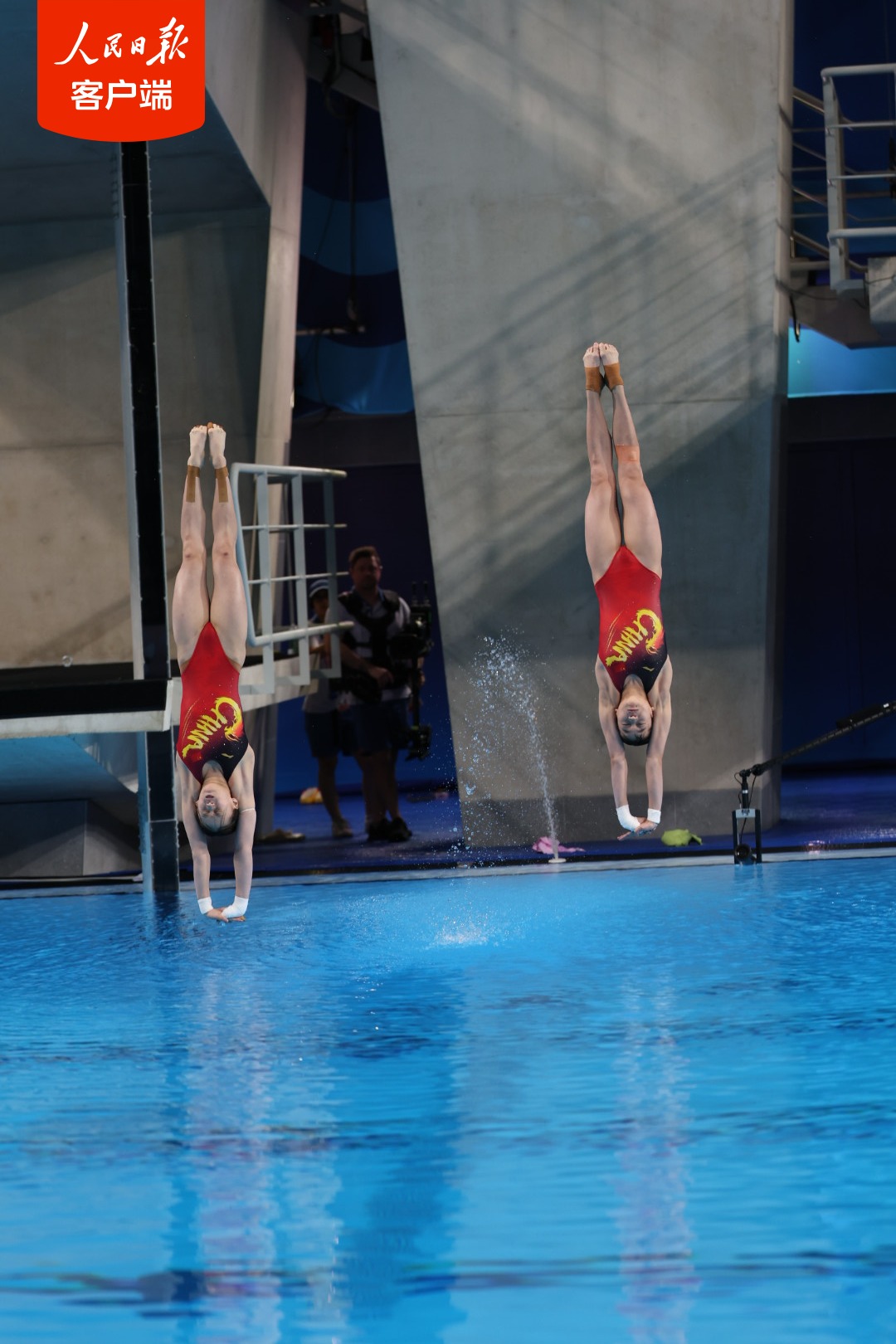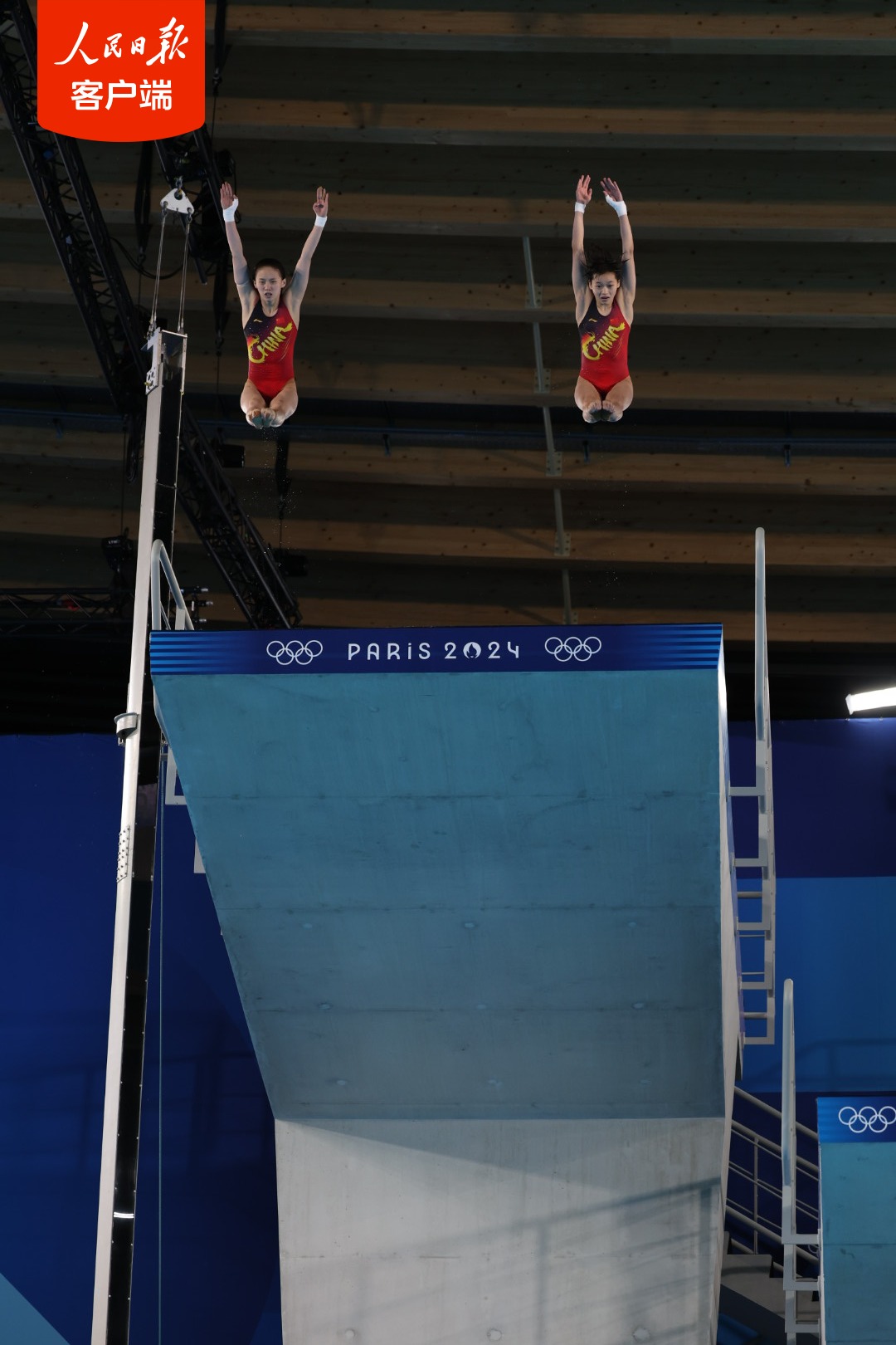 当地时间7月31日,巴黎奥运会跳水比赛在巴黎水上运动中心继续进行,中国队组合陈芋汐/全红婵在女子双人十米台决赛中夺得金牌,帮助中国队实现该项目七连冠。(来源:人民日报客户端 记者:厉衍飞)