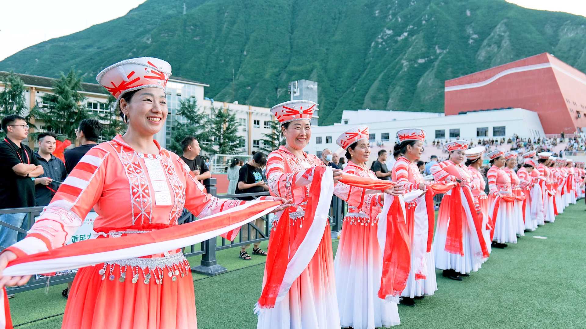 随着大型诗画情景歌舞表演《山水入画·天堂秘境》的开演,开幕式缓缓拉开序幕。聚焦“生态九寨”品牌,该演出分为《灵泽·万物》《坤灵·秘境》《扶光·天堂》《锦簇·九寨》四个篇章,充分融入了南坪曲子、㑇舞、登嘎甘㑇(熊猫舞)、川西藏族山歌、劳动号子、六弦琴等多项九寨沟非遗文化,给现场上千名观众呈现了一场既有人文历史又有生态画卷,既富诗情画意又展望美好未来的一场极具九寨沟地域特色和人文色彩的视觉盛宴。