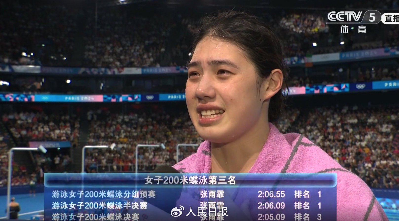 再夺一铜,笑泪交织,张雨霏赛后回应