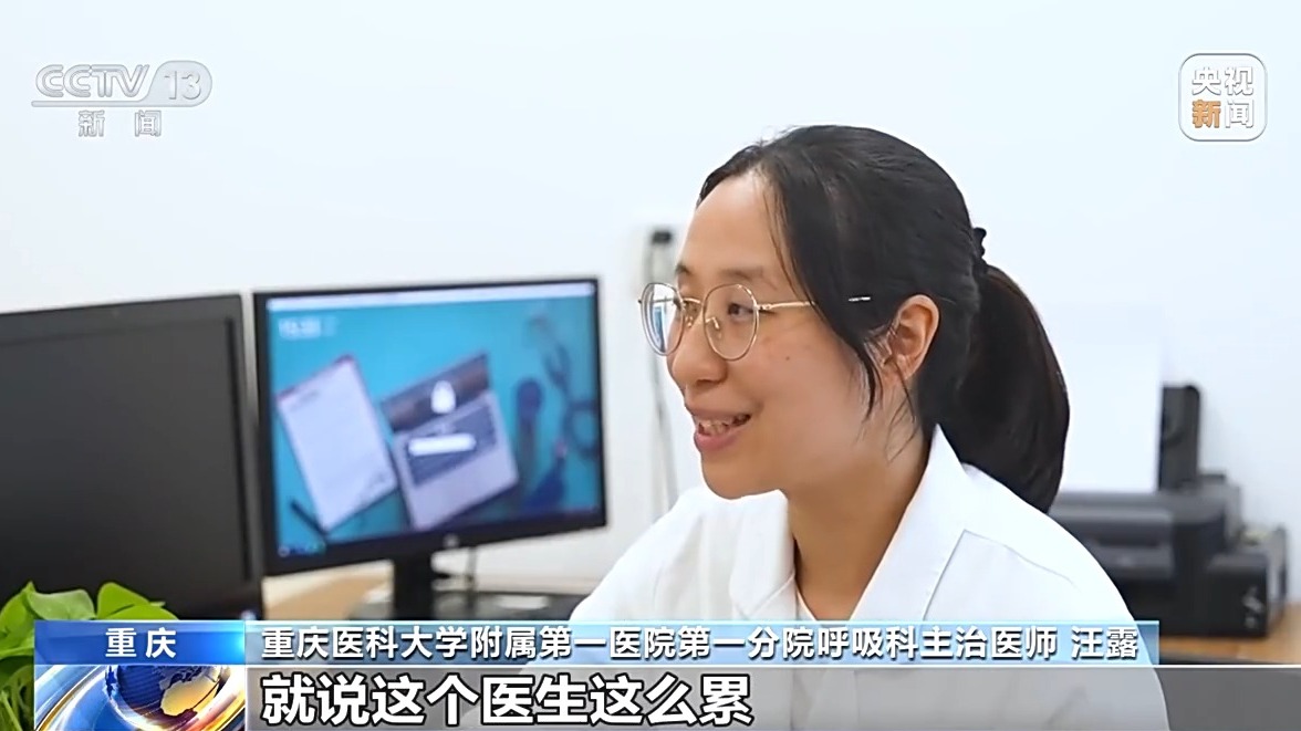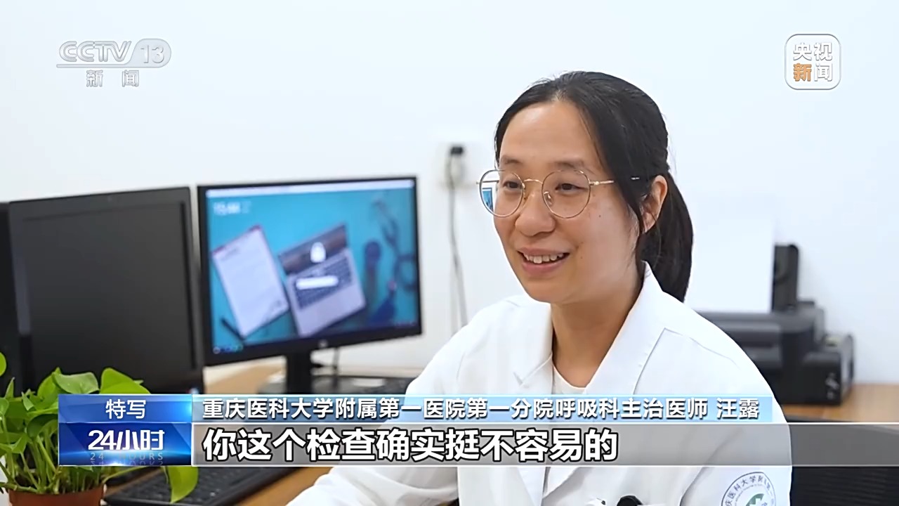 重庆医科大学附属第一医院第一分院呼吸科主治医师 汪露:患者都会给医生说,医生你辛苦了,这个检查确实挺不容易的,每次做都要使劲跟着我们一起做。走的时候都会说谢谢,就挺感动的。