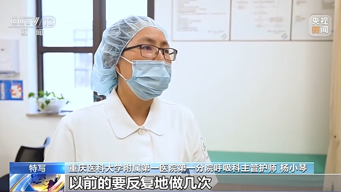 重庆医科大学附属第一医院第一分院呼吸科主管护师 杨小琴:以前要反复地做几次,她现在熟悉了以后,病人的情绪带动起来,比如三次、四次,她很快就可以达到质控要求了。