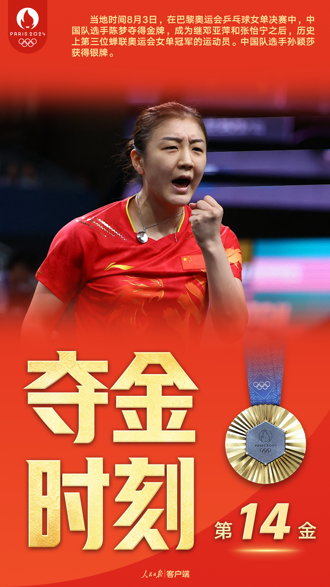 陈梦夺得女单金牌,国乒包揽冠亚军