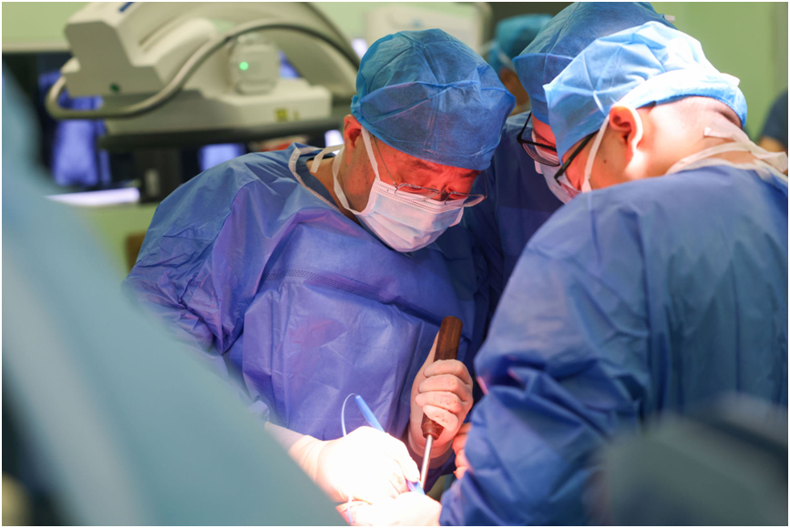 脊柱是身体的支柱,被誉为人体的“第二条生命线”,而脊柱侧弯好发于青少年,“在我国,脊柱侧弯的发病率约为1%—2.7%,其中中小学生脊柱侧弯的人数约有500万,每年新增约30万人,脊柱弯曲异常已成为继肥胖、近视之后危害我国青少年健康的第三大疾病”,活动现场,江苏省人民医院骨科主任殷国勇教授介绍,脊柱侧弯常见类型分为先天性和特发性两种,通常因难发现、发病速度快等原因而贻误病情,如未及时采取治疗,随着青少年的生长发育,将对心肺功能、腹部结构造成极大损害,因此要早预防、早发现、早治疗。“这次‘脊梁工程’中的6名孩子,有2名是因为半椎体发育不良而导致的先天性脊柱畸形,其余是特发性脊柱侧弯,侧弯角度较大,弯形非常僵硬。一般来说,就最佳治疗时间而言,我们建议先天性脊柱侧弯的治疗越早越好,而特发性脊柱侧弯则是在青春期二次高峰发育来临前都比较合适”,殷主任告诉记者,这6名患儿的手术复杂程度各有不同,最终因手术指征所限,有4名患儿接受了手术,其中最严重的从侧弯前的102度矫正到了25度,几乎与正常青少年无异。“针对这些孩子,我们手术团队设计了个体化、精准化的手术治疗方案,包括引入了先进的骨科机器人手术,帮助他们重塑脊梁,挺直腰杆。现在看到这些孩子们昂首挺胸,是我们作为医务工作者最大的幸福。”殷国勇教授说。