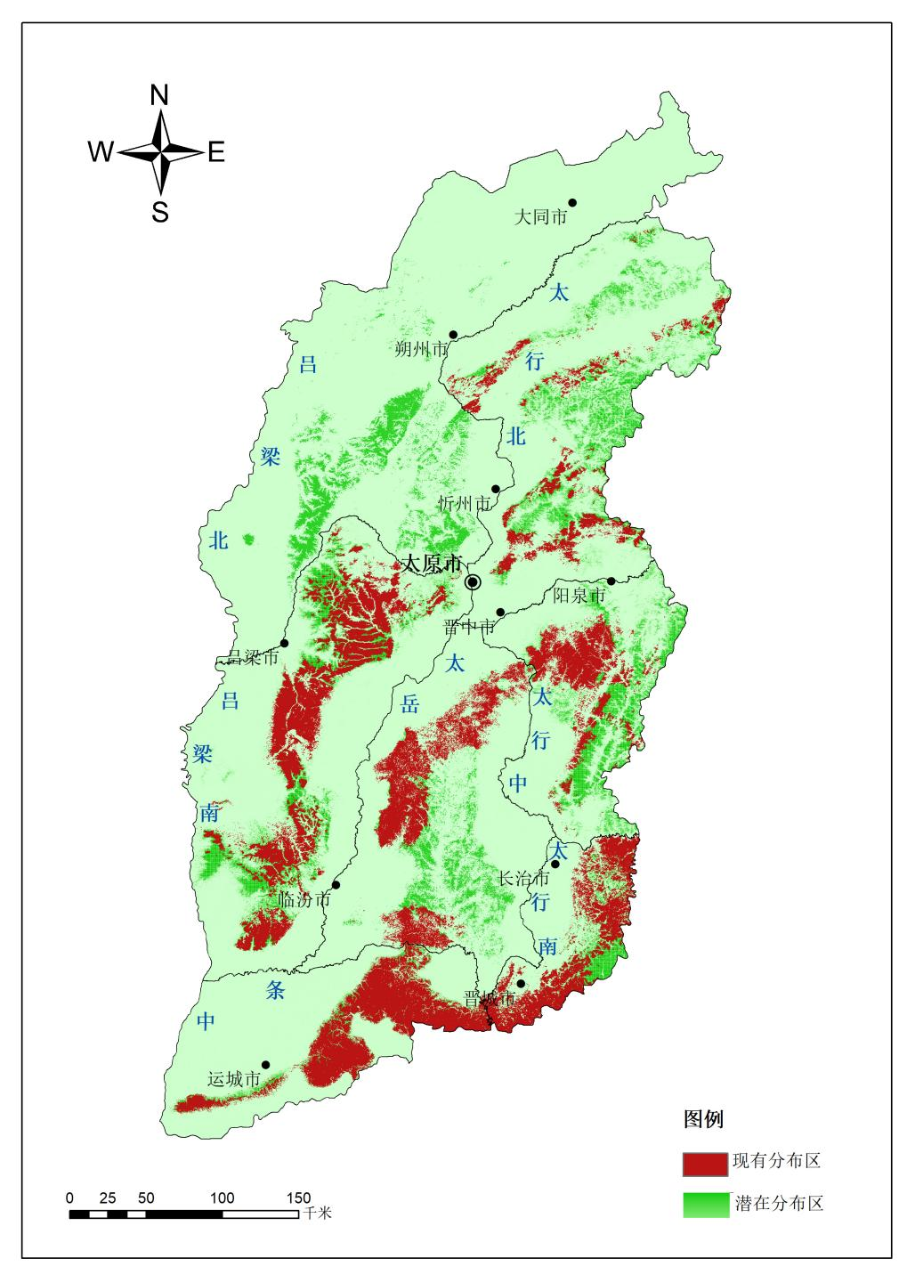 山西省华北豹分布图。图片由山西省林业和草原局提供