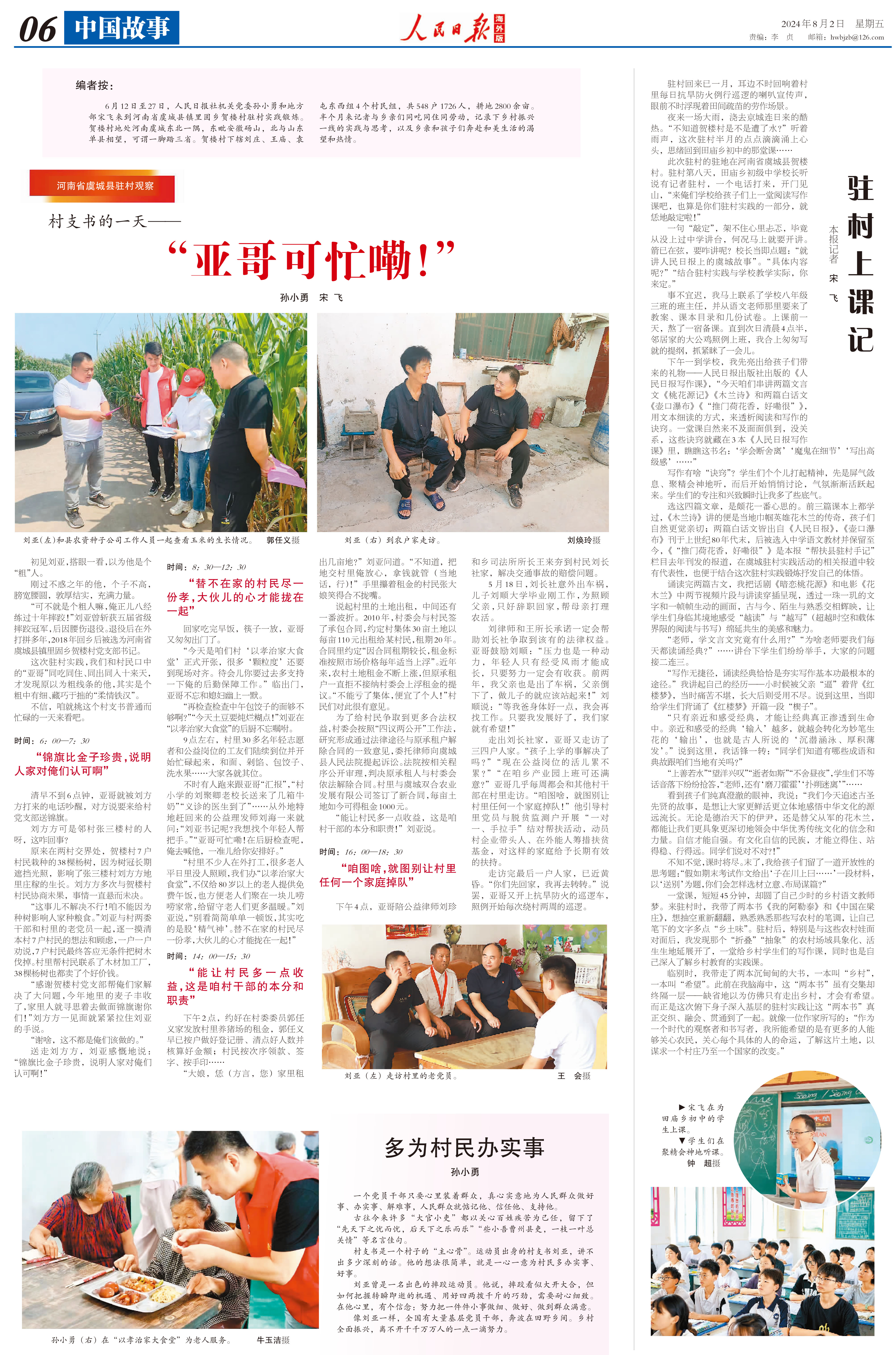 6月12日至27日,人民日报社机关党委孙小勇和地方部宋飞来到河南省虞城县镇里固乡贺楼村驻村实践锻炼。贺楼村地处河南虞城东北一隅,东毗安徽砀山,北与山东单县相望,可谓一脚踏三省。贺楼村下辖刘庄、王庙、袁屯东西组4个村民组,共548户1726人,耕地2800余亩。半个月来记者与乡亲们同吃同住同劳动,记录下乡村振兴一线的实践与思考,以及乡亲和孩子们奔赴和美生活的渴望和热情。