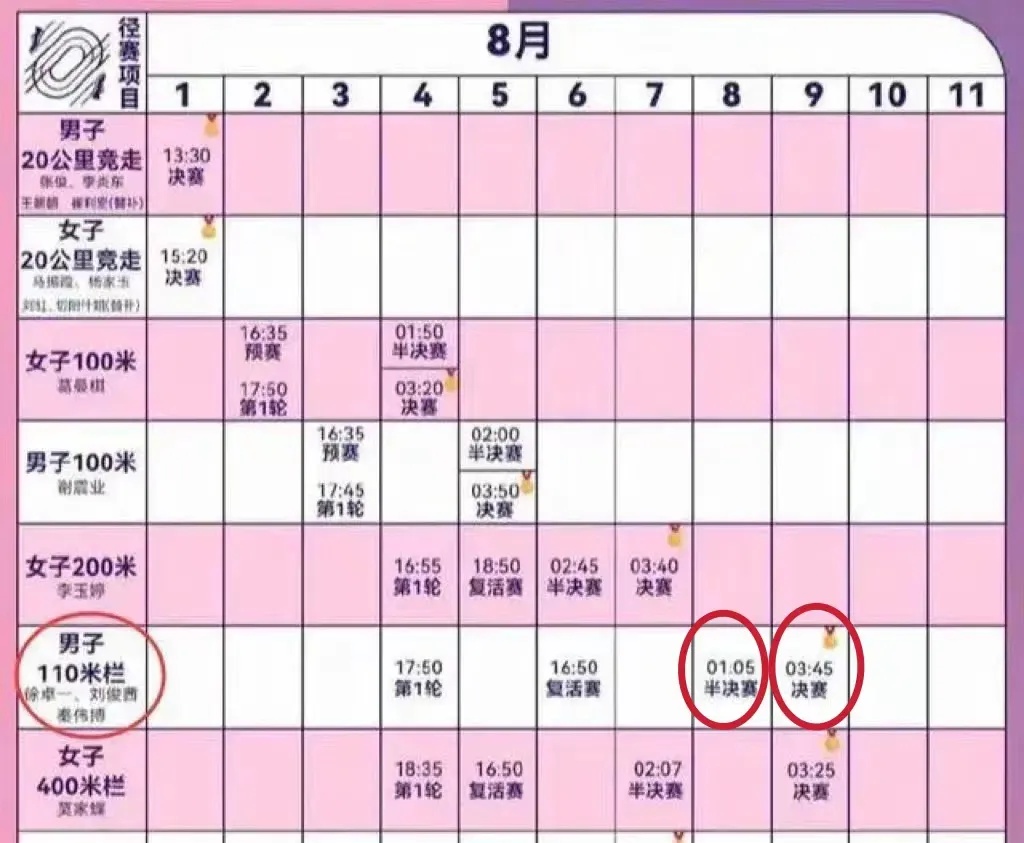 最后附上巴黎奥运会男子110米栏赛程直播时间表(半决赛、决赛)一起为徐卓一加油!