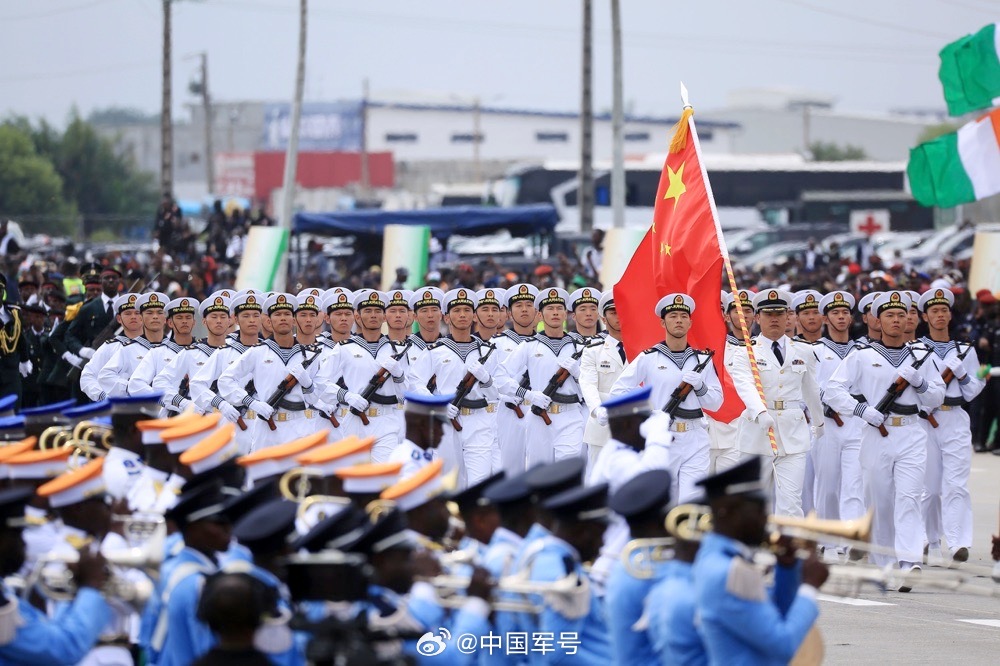 应科特迪瓦国防部邀请,中国人民解放军驻吉布提保障基地分队于当地时间8月7日在科经济首都阿比让参加阅兵典礼,庆祝该国独立64周年。这是中国人民解放军首次在科阅兵活动亮相。为参加此次典礼,中方专门成立由驻吉布提保障基地67名官兵组成的任务分队,官兵精神抖擞、步伐整齐,展现了中国军人的飒爽英姿,赢得了观礼嘉宾的赞许。