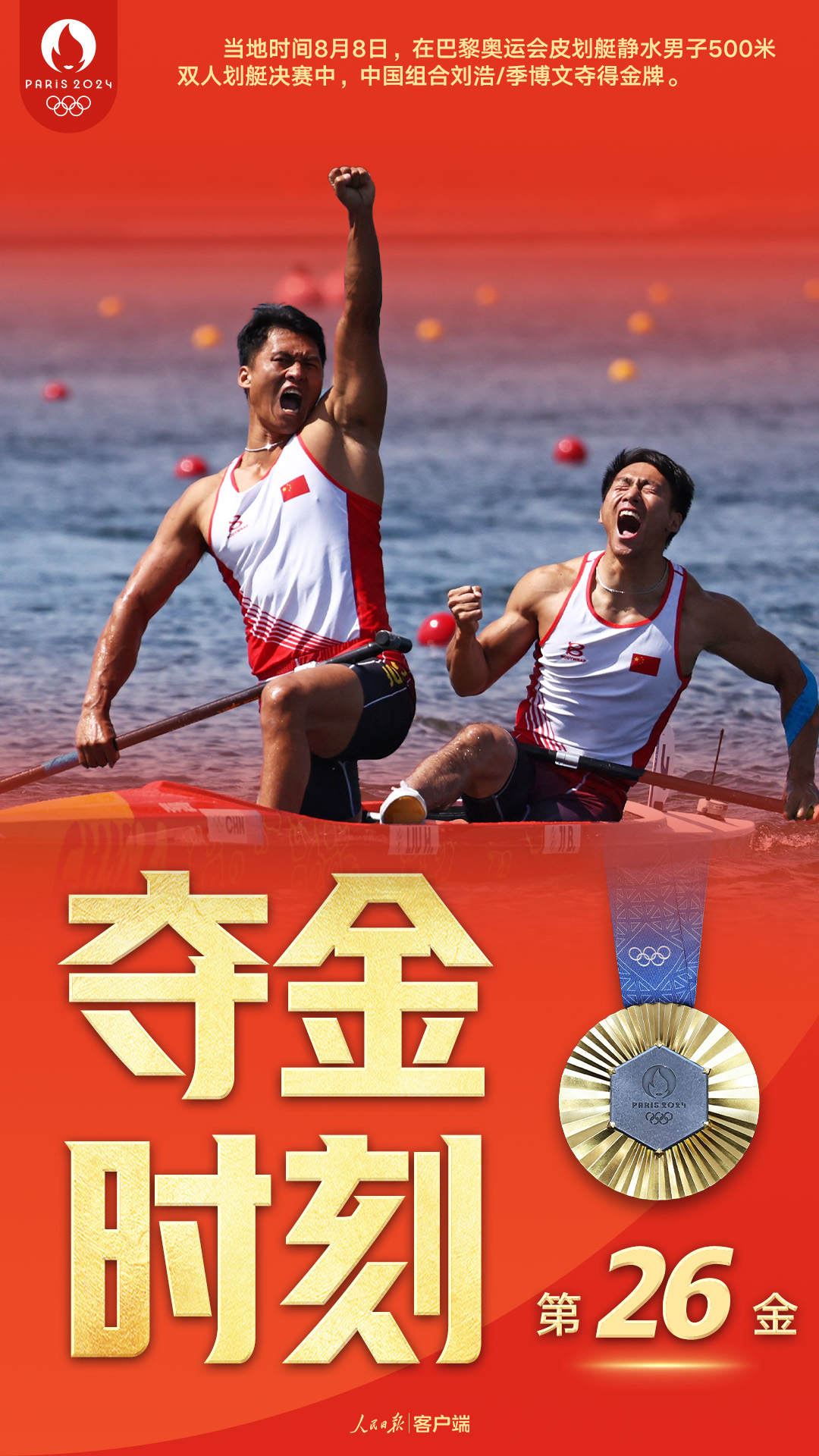 20年前的雅典奥运会,孟关良和杨文军首夺皮划艇静水男子500米双人划艇冠军,为中国水上项目实现奥运金牌零的突破。16年前的北京奥运会,他们在这一项目实现卫冕,再次创造了历史。而今,光荣的接力棒交到刘浩和季博文手上。在巴黎奥运会皮划艇静水赛场,中国组合面对一众欧美强队,预赛刷新奥运会最好成绩,决赛一路领先率先冲线,再次站上男子500米双人划艇最高领奖台。劈波斩浪、无畏向前,他们身上迸发的中国力量,让世界看见中国速度!