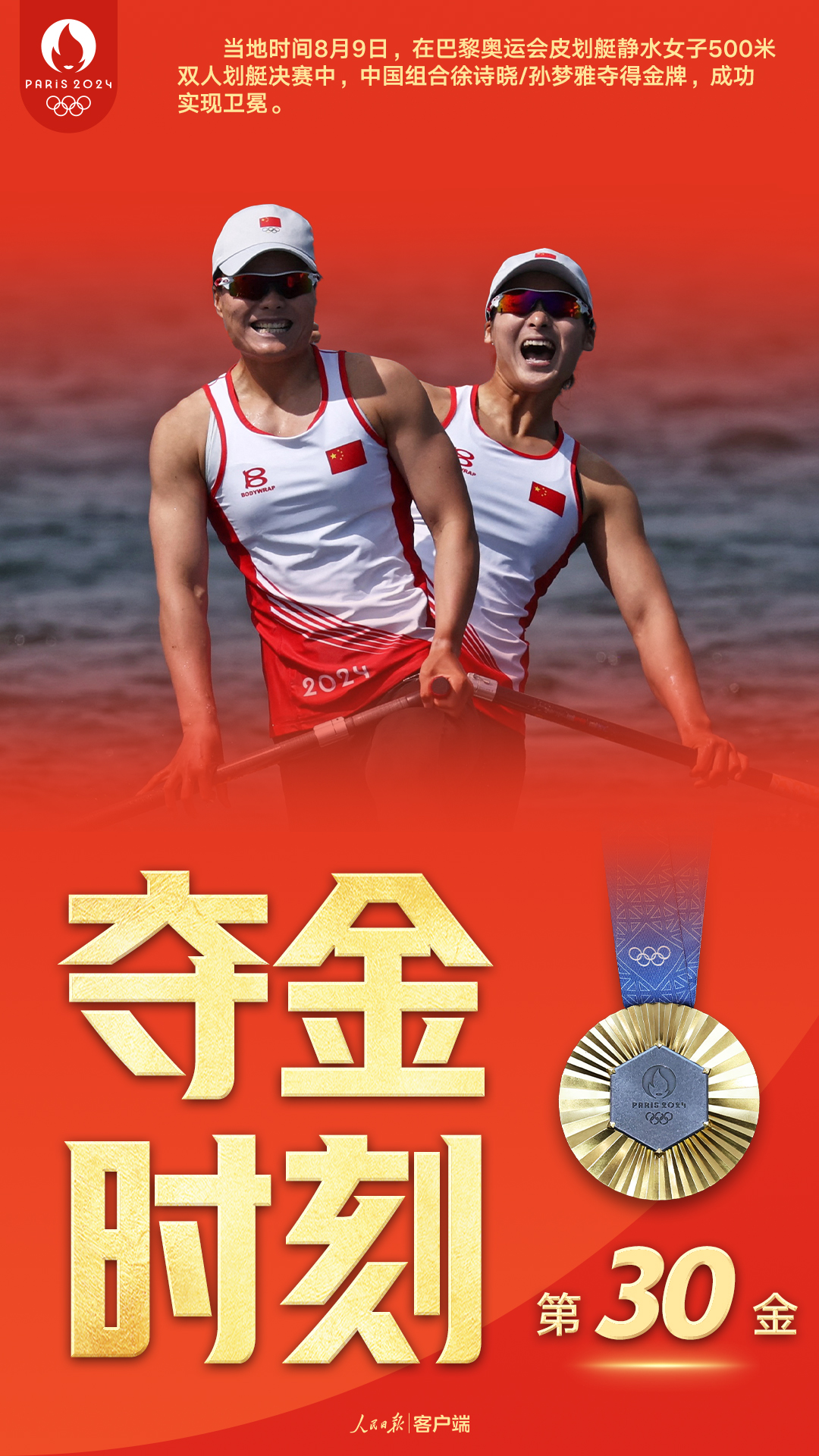 一直被追赶,从未被超越!从2019年组合以来,徐诗晓和孙梦雅征战国际比赛保持不败战绩,在巴黎奥运会赛场,这个辉煌纪录仍在延续。从预赛、半决赛到决赛,三次刷新奥运会最好成绩,成功卫冕女子500米双人划艇金牌,她们用非凡的勇气和过人的实力,证明自己依然是这一项目的世界最强者!