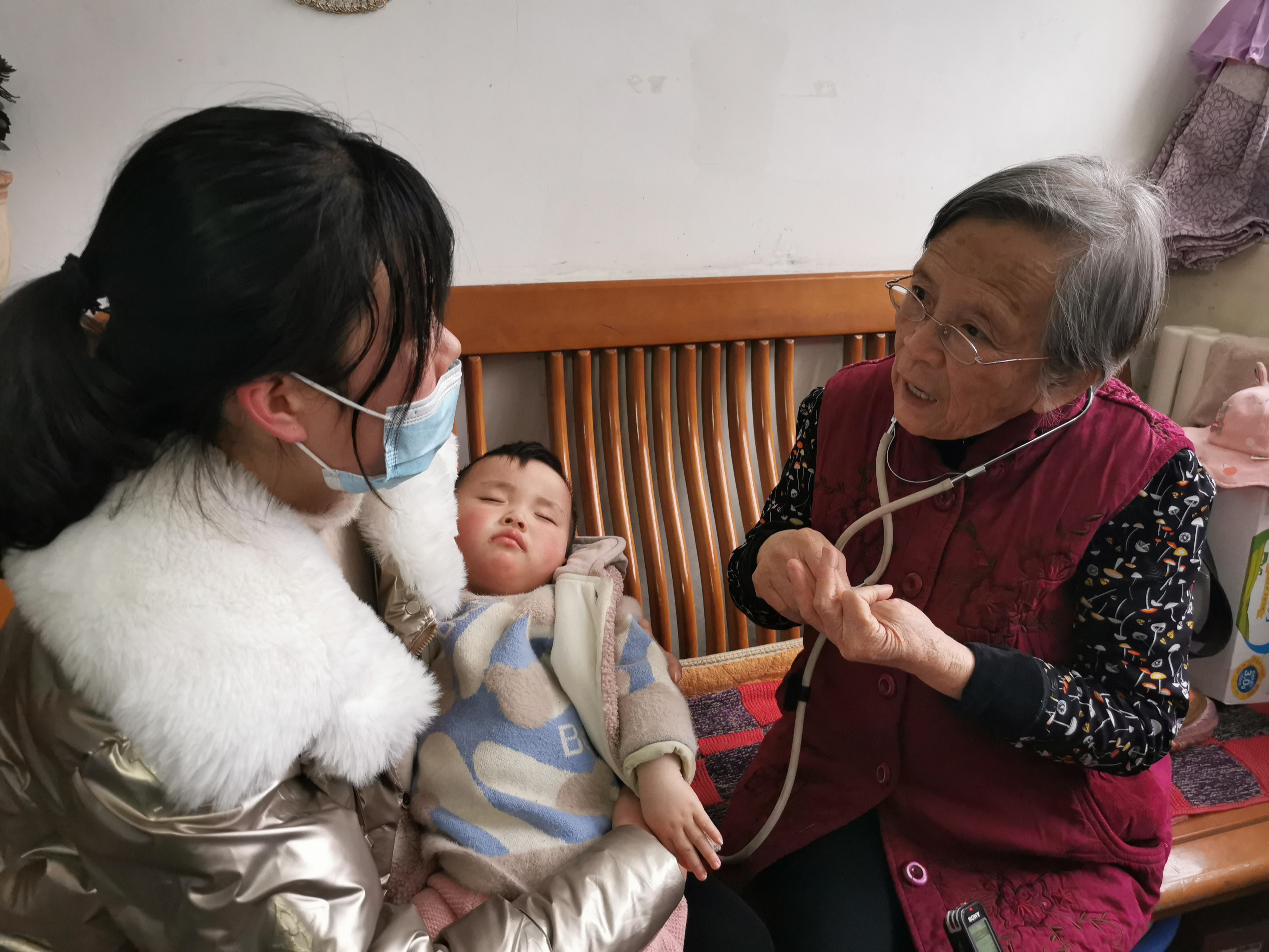 路生梅在佳县家里为患儿义诊。新华社记者 陶明 摄