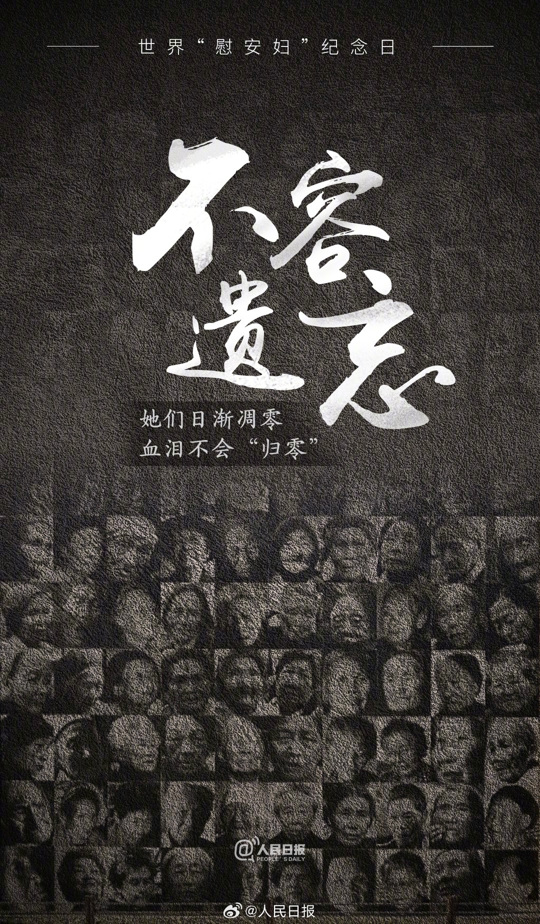 今天是世界“慰安妇”纪念日,截至目前,经调查确认的中国大陆地区登记在册的日军慰安妇制度受害幸存者仅剩7人。见证者日渐凋零,但那些血泪不会“归零”,残忍的真相不能被掩埋,她们在等一个道歉。勿忘历史,传递真相!