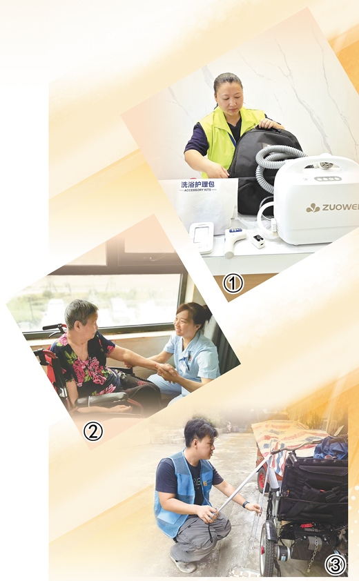 图①:老年助浴员肖琳在店里收拾设备,准备上门为老人助浴。 |