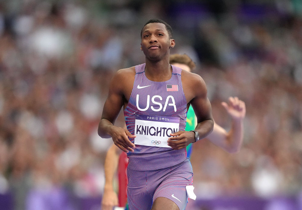 8月7日,美国选手奈顿在巴黎奥运会田径男子200米半决赛比赛中。新华社记者 吕小炜 摄