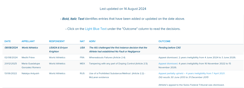 针对曾在兴奋剂检查中被发现阳性但仍获准参加巴黎奥运会的美国田径选手埃里扬·奈顿,田径诚信委员会(AIU)14日宣布,已经就此向国际体育仲裁法庭(CAS)提起上诉。