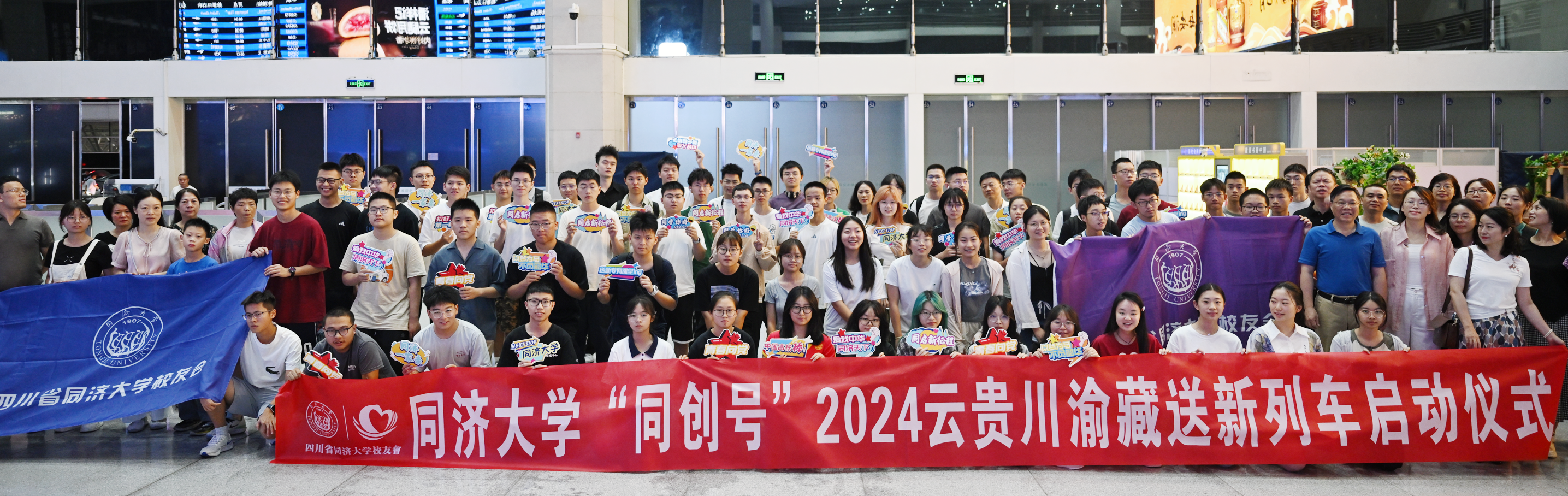 8月13日,在同济大学2024年云贵川渝藏联合迎新送新活动上,“同创号”专列仪式启动。来自云贵川渝藏的同济校友和2024级同济新生和家属们齐聚成都,一起“漫话同济”,四川校友会还为部分新生提供全额学费补助等举措。毕业于四川省绵阳中学的本科新生邓同学作为受助代表,感动地说进入大学后将保持学习的劲头,精进学业,努力回馈国家和学校的培养。
