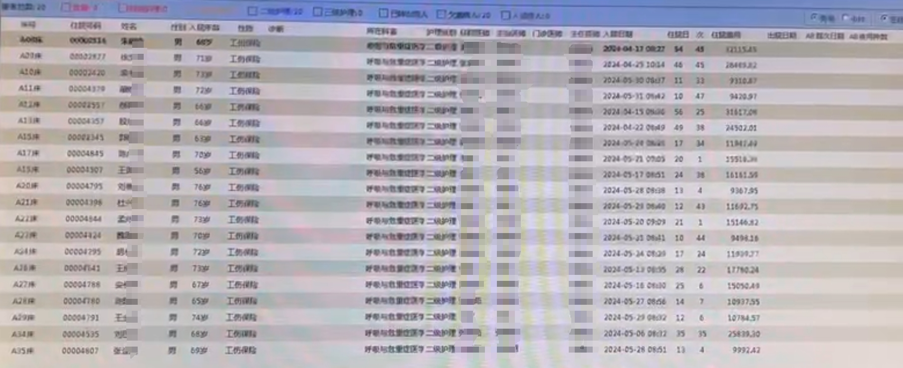 系统内部显示满床,多位病人已经住院几十次