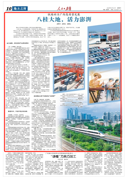 为在新时代推动西部大开发,国铁南宁局依托铁路作为国民经济大动脉优势,持续优化运输产品供给,畅通联接生产和消费、内贸和外贸的物流筋络,助力广西壮族自治区发展特色优势产业,推动开放开发,为边疆民族地区高质量发展注入动力。