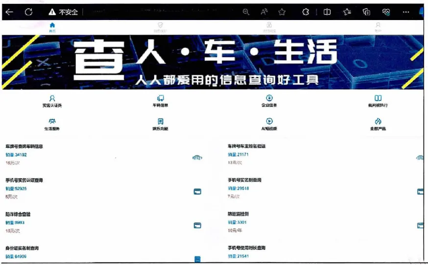 登录网站后,小吴发现用户无需注册也无需认证,只要付费就能使用相应的业务。为了验证真伪,小吴点开个人信息画像查询模块,尝试着输入自己的姓名、身份证号等信息,发现网站在验证上述信息之外还提供了户籍地址、手机号使用时长等其他个人信息,且与自己的真实信息一模一样。