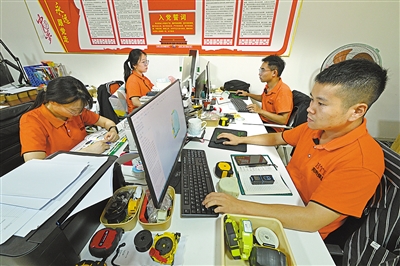 虞城县邦特工量具有限公司的设计人员在设计五金产品外观。