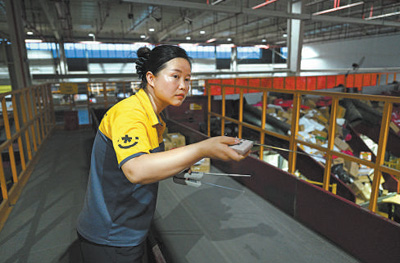 虞城县一家快递公司的工作人员在对五金快递件进行遥控分拣。