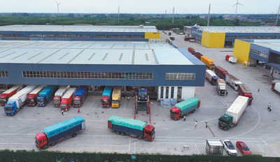 虞城县电商物流园,载有五金工量具的货车正在准备发车,五金工量具由此发向全国各地。
