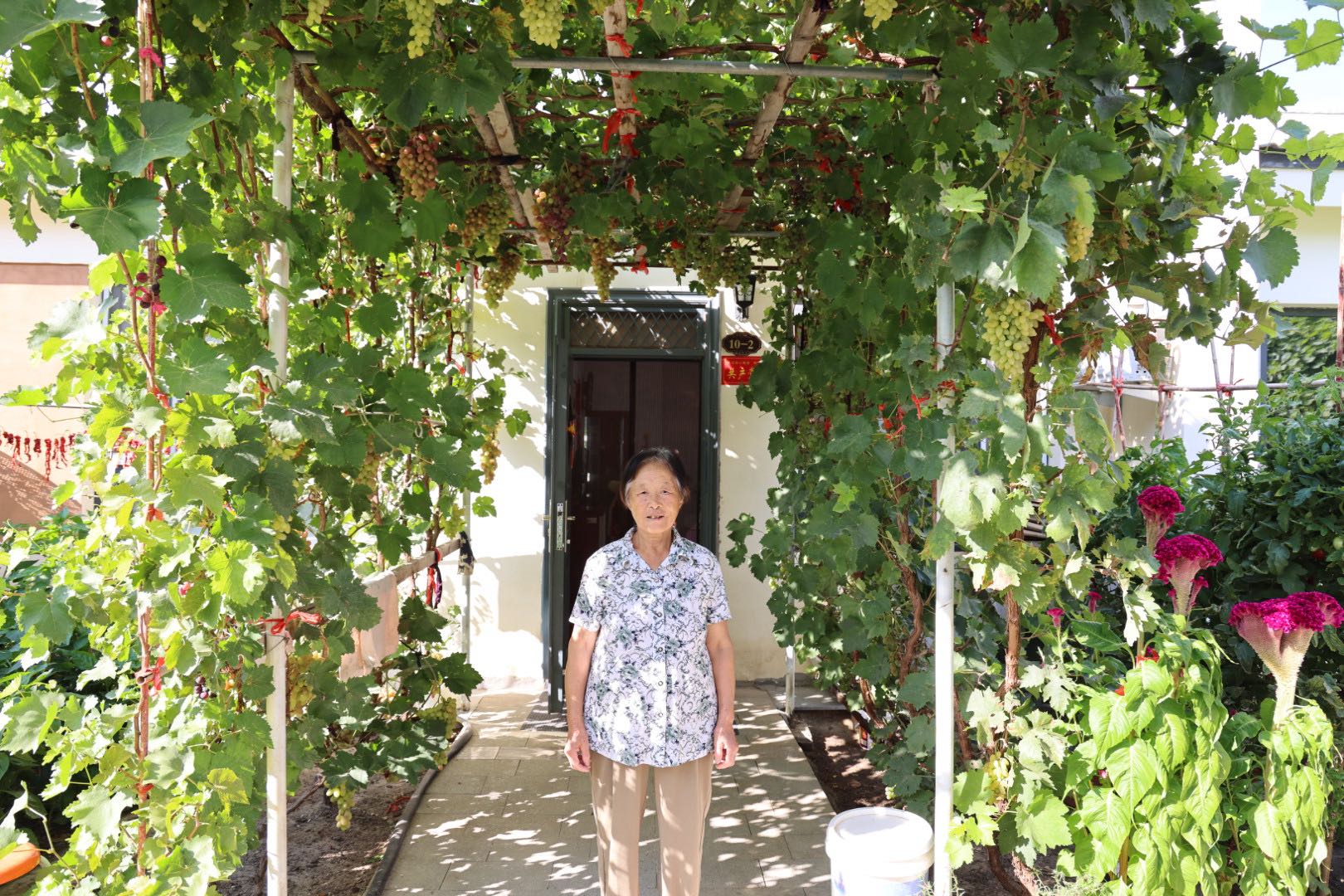 走进院内,一位老人热情地迎了上来。待大伙儿坐定,她又赶忙端上来自家种的葡萄。愉快的氛围中,她愉快地讲述了自己的养老故事。