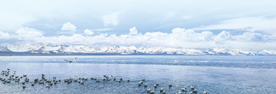 巍峨的念青唐古拉山与壮美的纳木错相映成景。孙志芳摄(影像中国)