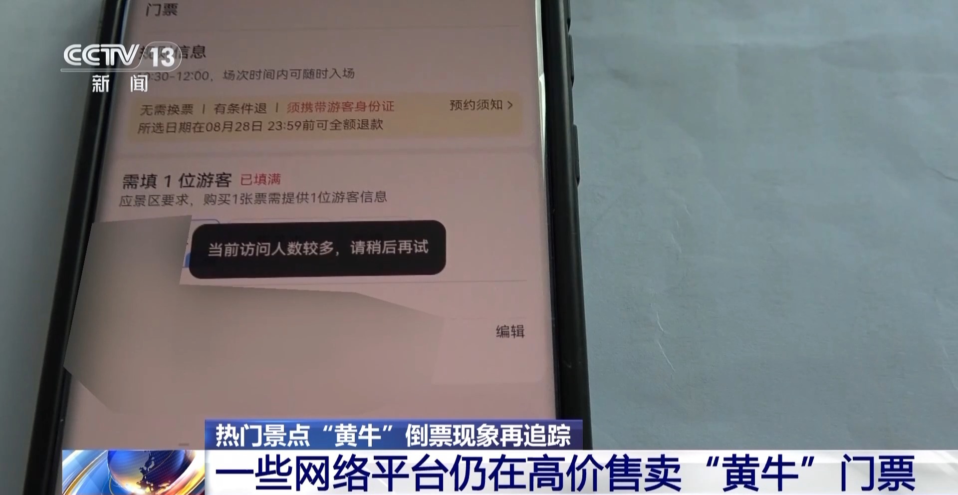 前不久,记者报道了北京暑期旅游旺季免费景点预约难、“黄牛”抢票高价牟利的现象。节目播出后,各地迅速行动,严厉打击“黄牛”利用抢票软件抢票牟利的行为。然而,记者注意到,在一些网络平台,仍有不少“黄牛”在高价售卖热门博物馆的门票。
