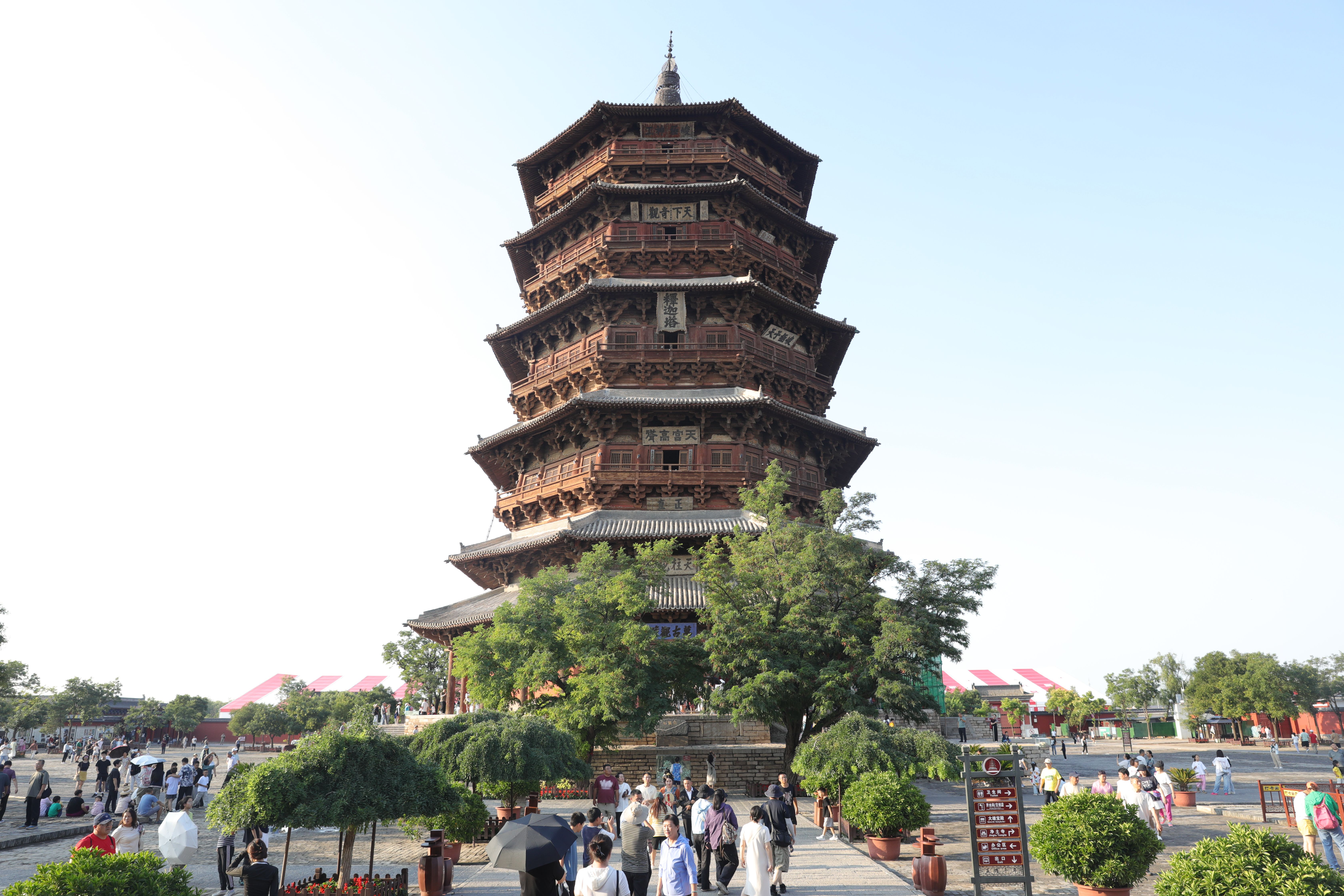 云冈石窟内的游人熙熙攘攘,有人在与大佛隔空“击掌”合照,也有人静心聆听千年前的刀刻斧凿之声;悬空寺南北两侧的三檐歇山顶高楼凌空而立,仿佛两位巨人相望,形成一幅错落有致的空中奇景,游人穿过仅能一人通行的塔台,直呼地势高险;几只鸽子落在应县木塔的千年飞檐之上,一名游客轻轻摩挲着木柱的裂纹……山西“古建热”走红网络后,更多游客选择前来深入体验古建背后所蕴含的传统文化。