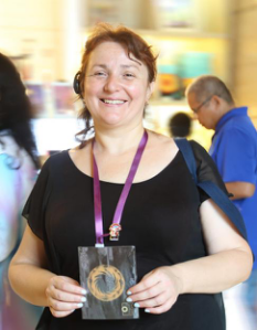 格鲁吉亚“经济中心网”总编辑莉安娜•乔尔乔利亚尼带“‘太阳神鸟’回家”(李佩蔺摄)