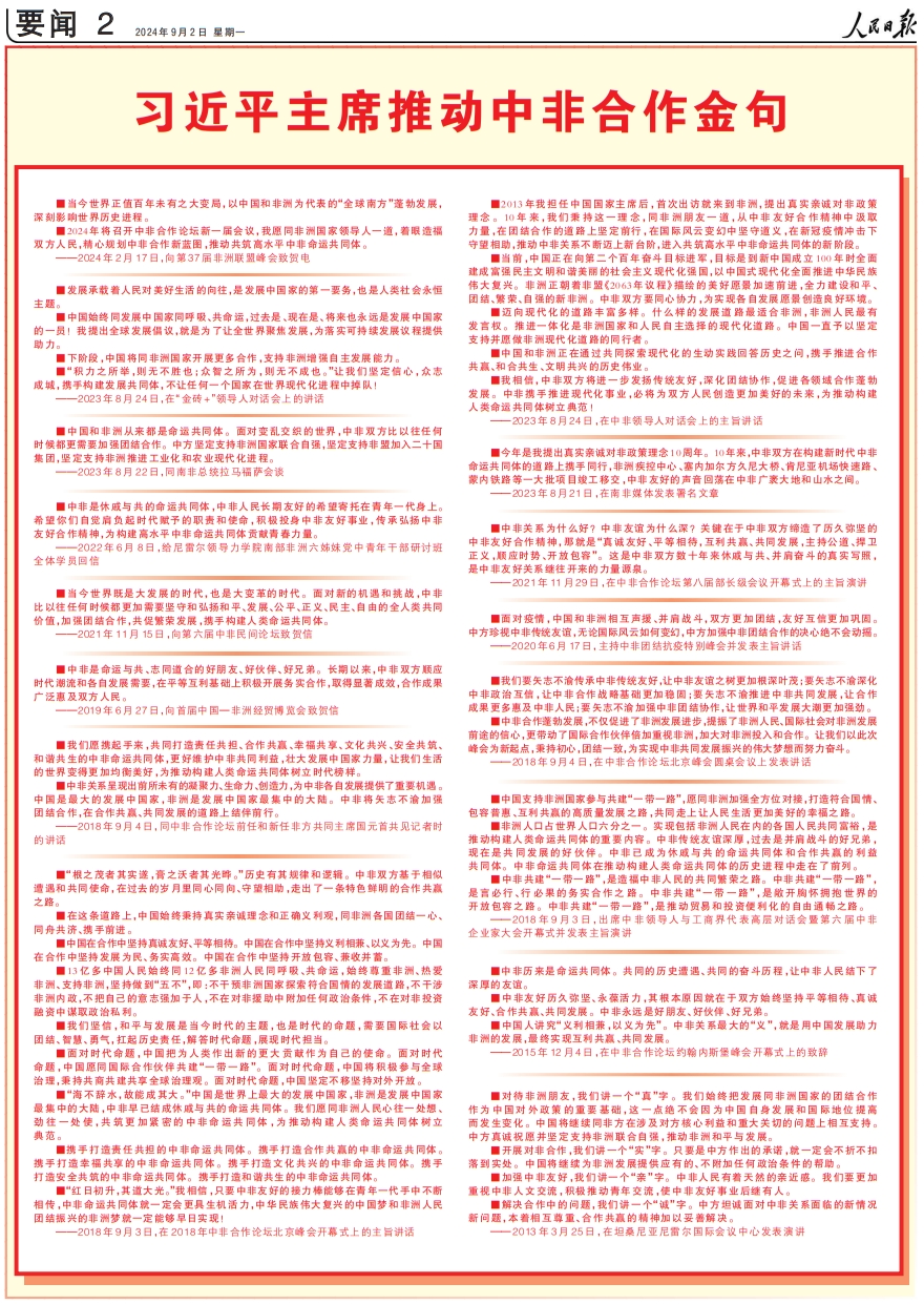 ——2023年8月24日,在中非领导人对话会上的主旨讲话