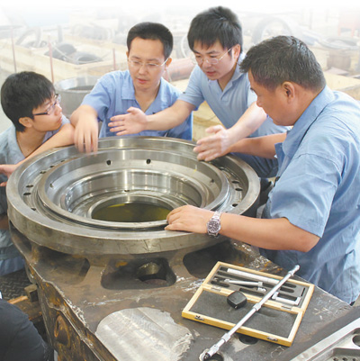 研发人员在讨论新产品装配。 |